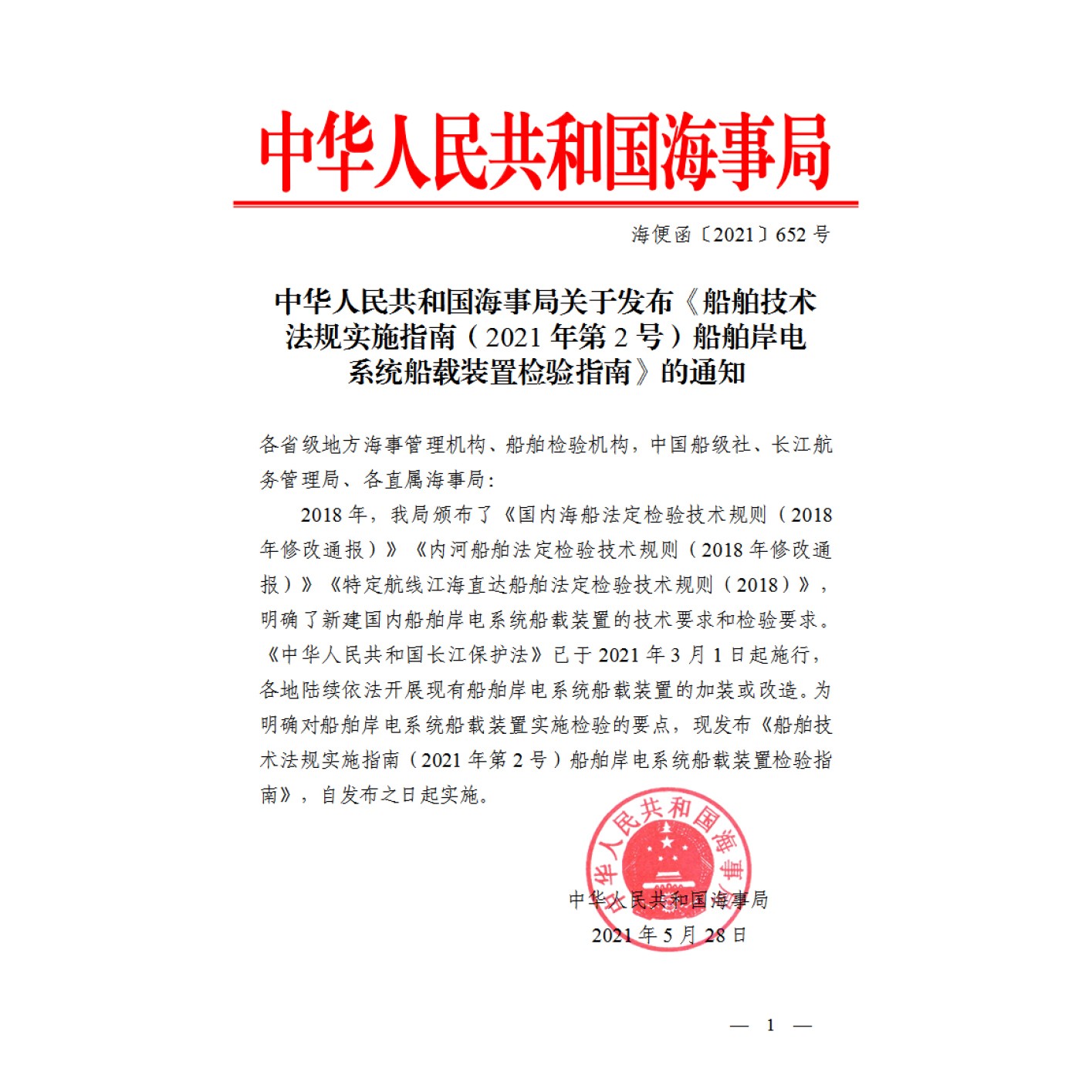 中華人民共和國(guó)海事局關(guān)于發(fā)布通知